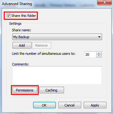 Step 3. Check the Share this folder option > Click Permissions to customize the permissions for a specific user or group.