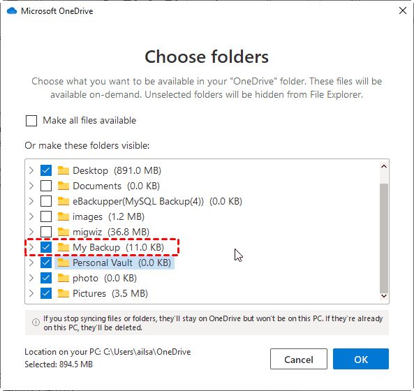 Also, you can choose which folder you want to sync and download files from OneDrive.