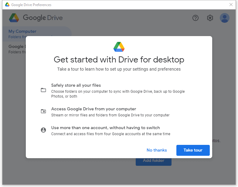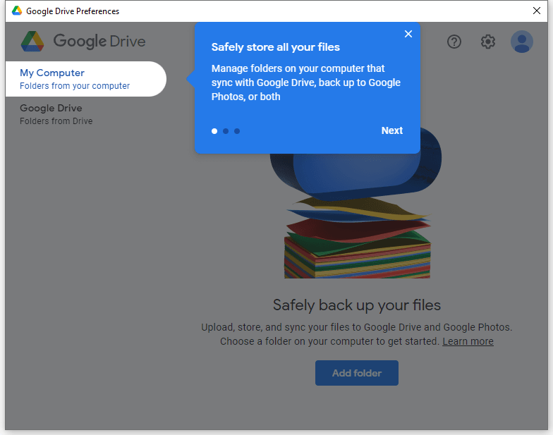 Google Drive is a popular cloud service for file storage and sharing. You can select multiple folders on desktops or laptops to sync them with Google Drive. Even if your PC breaks down, these files will stay safe. And if you sign in to the account on another device, you can sync files in Google Drive to that PC easily.