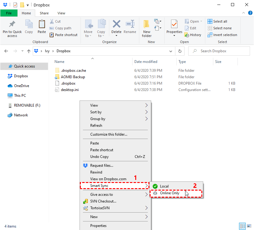 Speaking of syncing local folder to Dropbox, you may think about using Dropbox app or its desktop folder. In addition, Smart sync of Dropbox is an excellent choice, which can help you save hard drive space automatically. You can also view these online files locally when your computer connects to the network.