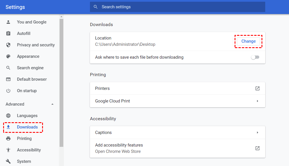 💡 Note: To set your external drive as the backup location, click the three-dot button in Chrome, then go to Settings > Downloads > Change, and choose your external drive.