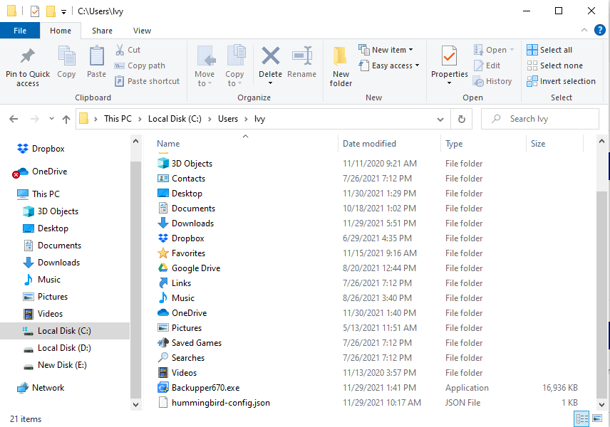 3. Open File Explorer and locate your OneDrive folder. Then click the “Move to” button from the upper column and then select a folder on the external hard drive.