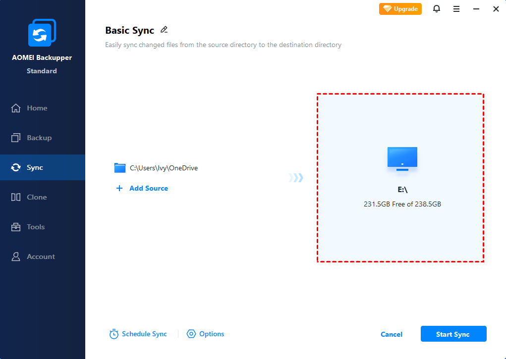 Except for moving the OneDrive folder to an external drive, you can still sync OneDrive with a free and reliable file sync software for Windows 11/10/8/7 to ensure your files are always safe. AOMEI Backupper Standard is a great option because of the following advantages.