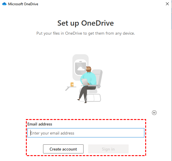 4. When all the contents in the OneDrive are moved to the external drive, bring out the OneDrive setup screen, and sign in with your OneDrive account.