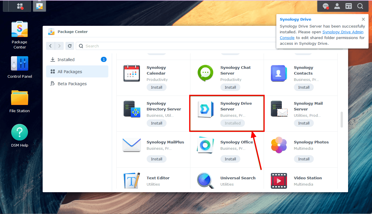 - To use Synology Drive, install the Synology Drive Server package on the NAS from the Package Center app.