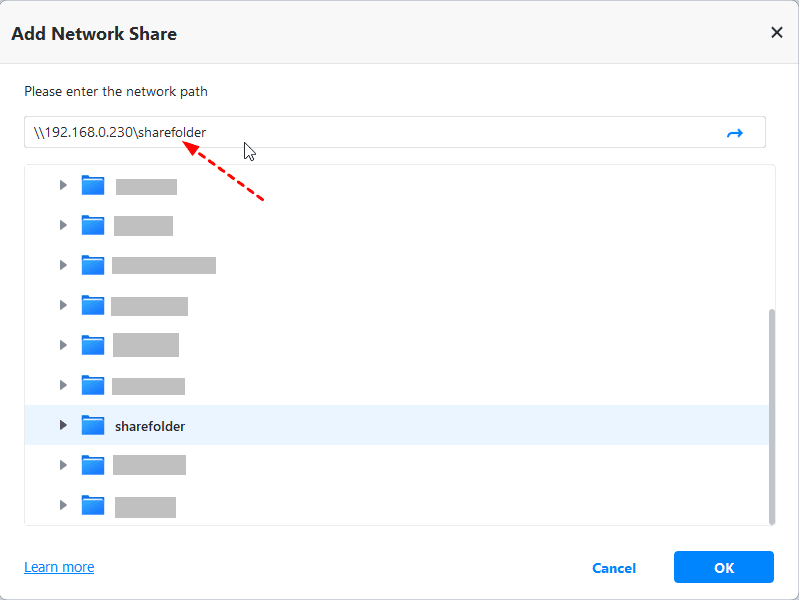 Step 4. Type the network path of Synology NAS in the blank box and select a folder on it to save your emails in Gmail.