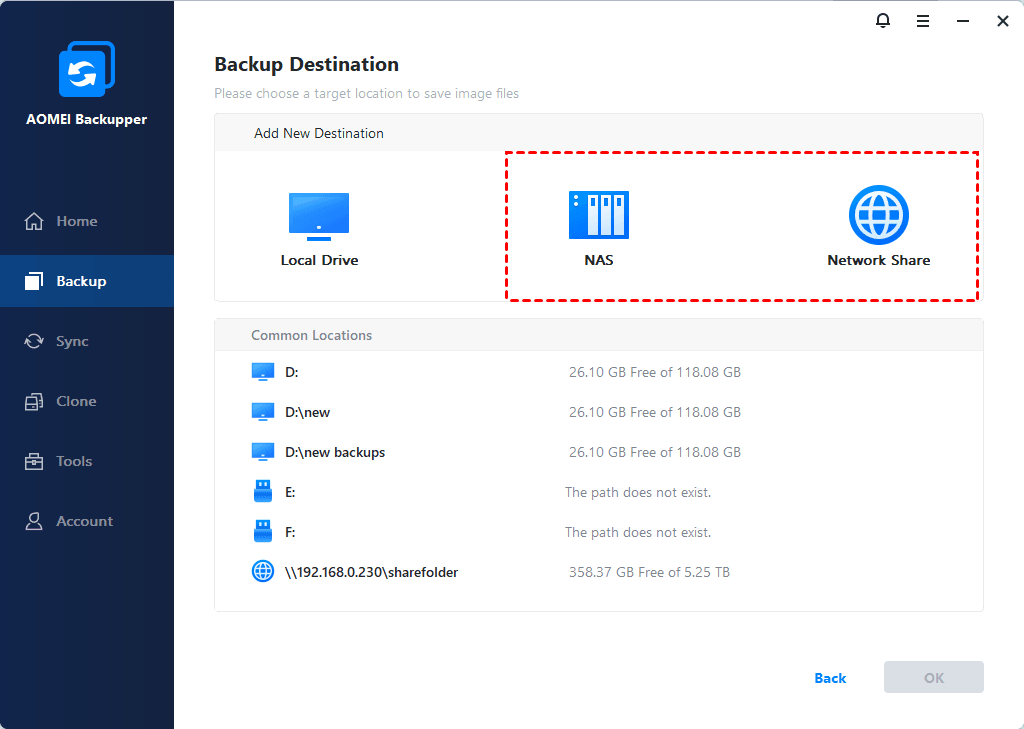 Step 3. Click Add Share or NAS Device to select the destination path.