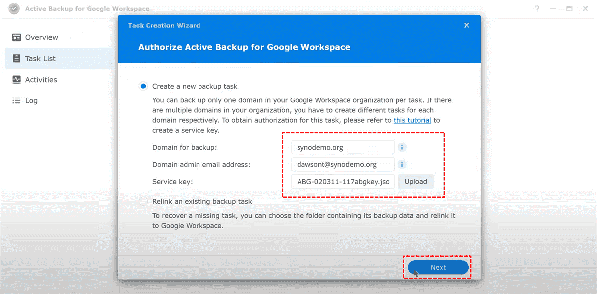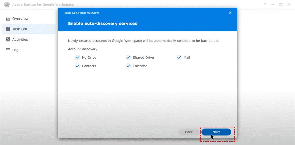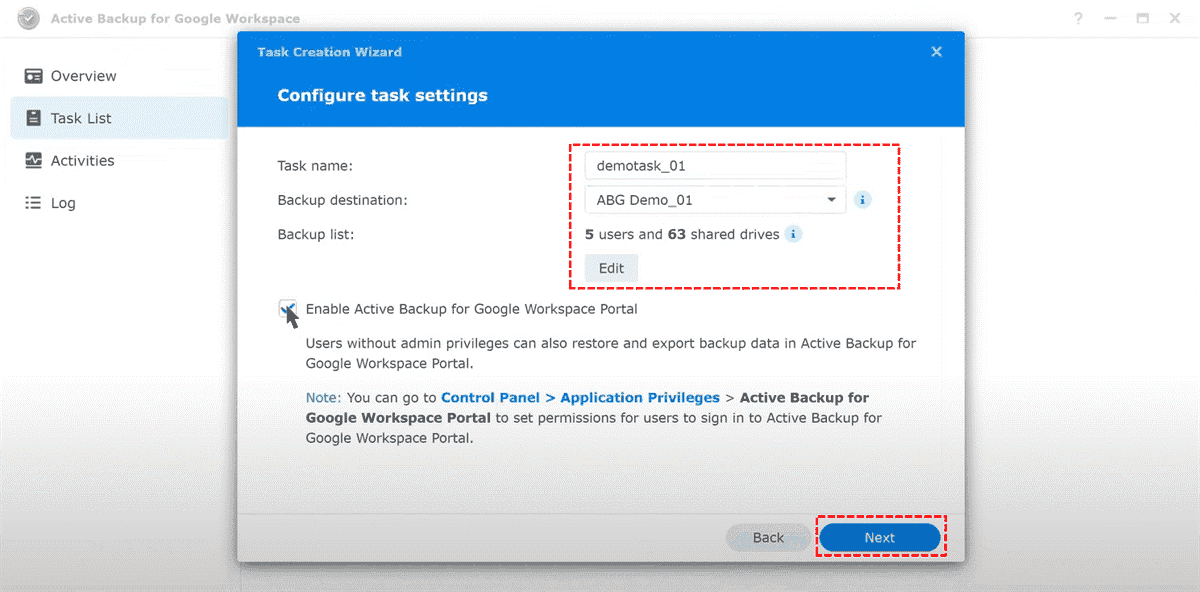 Step 3. Open Active Backup for Google Workspace and navigate to the Task List section.