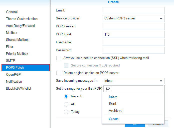 Step 4. Configure POP3 Fetch in MailPlus. Then save the settings.