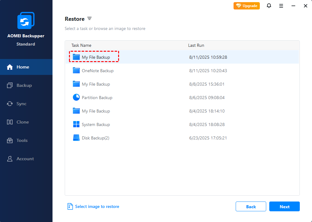 Method 2. Free Synology data recovery software—AOMEI Backupper