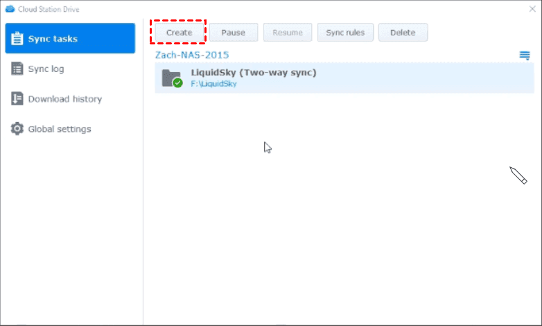 1. Click Cloud Station Drive in the system tray and Main app to launch it. Then, go to Sync task and click + Create.