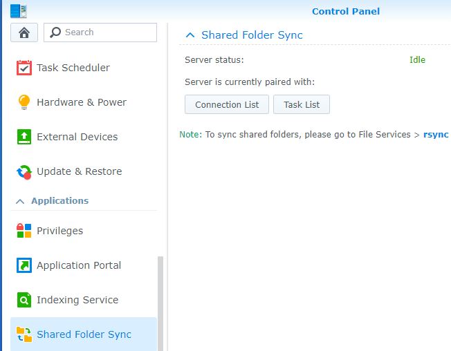 - On the source Synology NA, go to Control Panel > Shared Folder Sync > Task List.