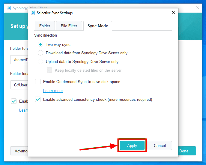 ▶ To perform Synology sync local folders: