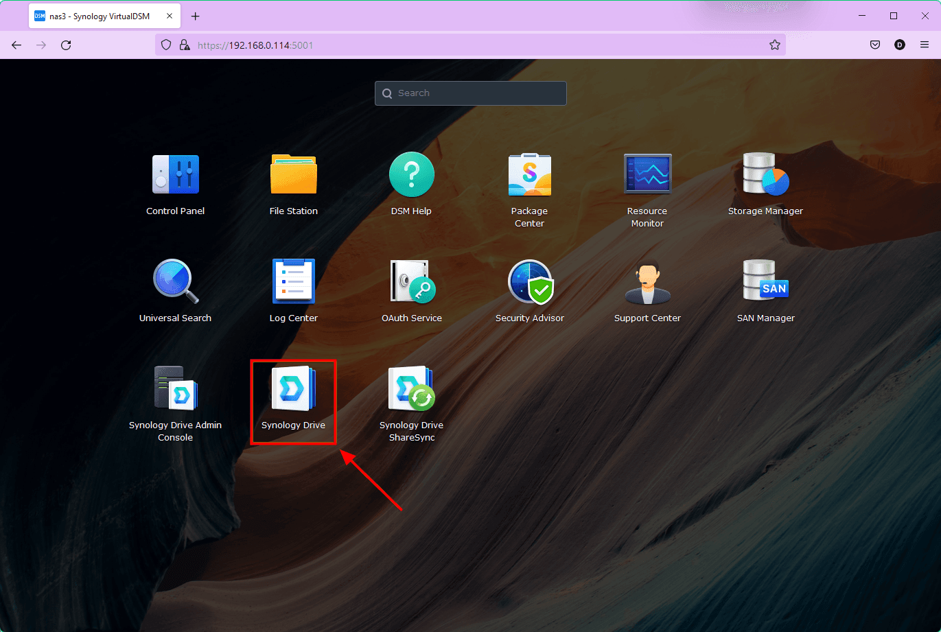 - Once Synology Drive Server is installed on the NAS and user home service is enabled, you can access Synology Drive from your favorite web browser. Click on the Synology Drive app from the DSM web interface. Synology Drive web app should be opened in a new browser tab.
