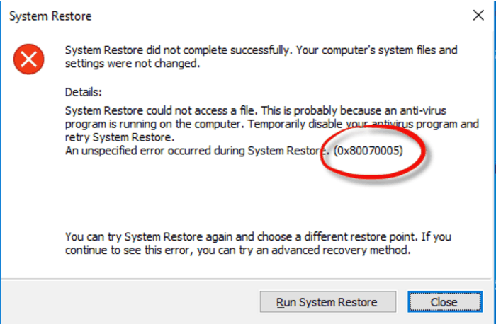 👉 System Restore error 0x80070005
