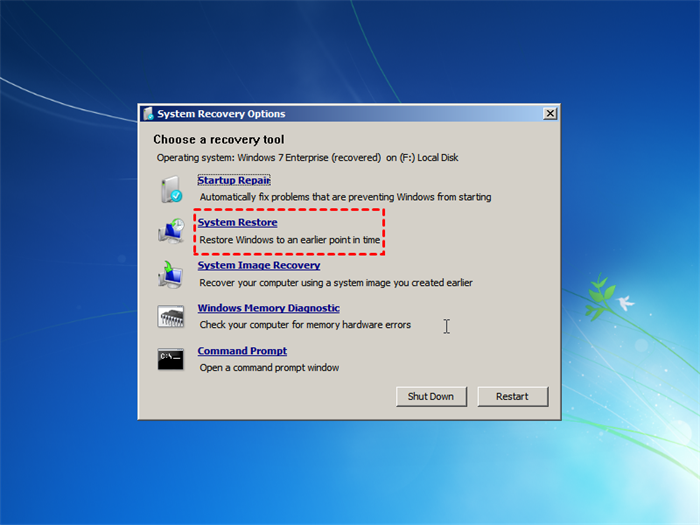 Step 5. Select System Restore from the Choose a recovery tool menu.
