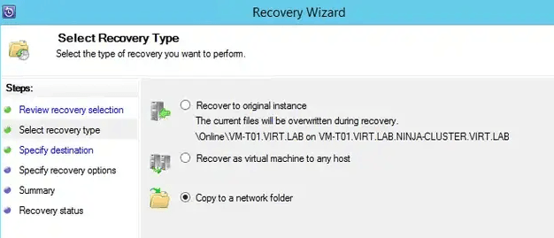 Step 3. On the Select Recovery Type page, opt for Copy to a network folder.