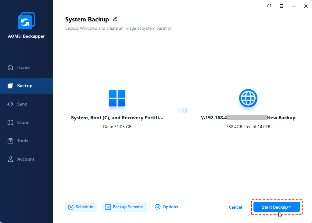 Tip: In addition, if you wish to include all partitions on the hard drive, you can choose Disk Backup. AOMEI Backupper provides the capability to restore both system backups and disk backups to another computer with different hardware configurations.
