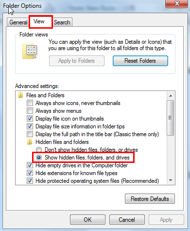 Step 3. Then go to Start menu > Control Panel > Appearance and Personalization. Choose Folder Options, and then select the View tab. Select Show hidden files, folders, and drives and click OK to confirm.