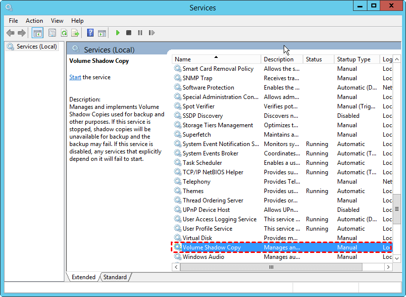 Fix 3: Make sure Volume Shadow Copy Service is running