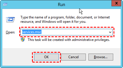 Step 1. Press Windows Key + R then type services.msc and click OK.