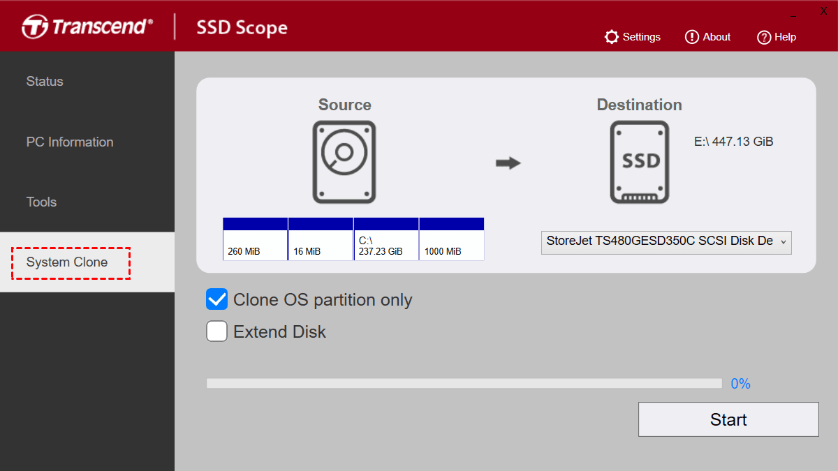This software has features include: View Drive Information, View S.M.A.R.T. Status, Diagnostic Scan, Secure Erase, Firmware Update, TRIM Enable, Health Indicator and System Clone. To maintain a SSD, Transcend SSD Scope really has it merits. Nevertheless, when it comes to data migration, you’d better find another strategy.