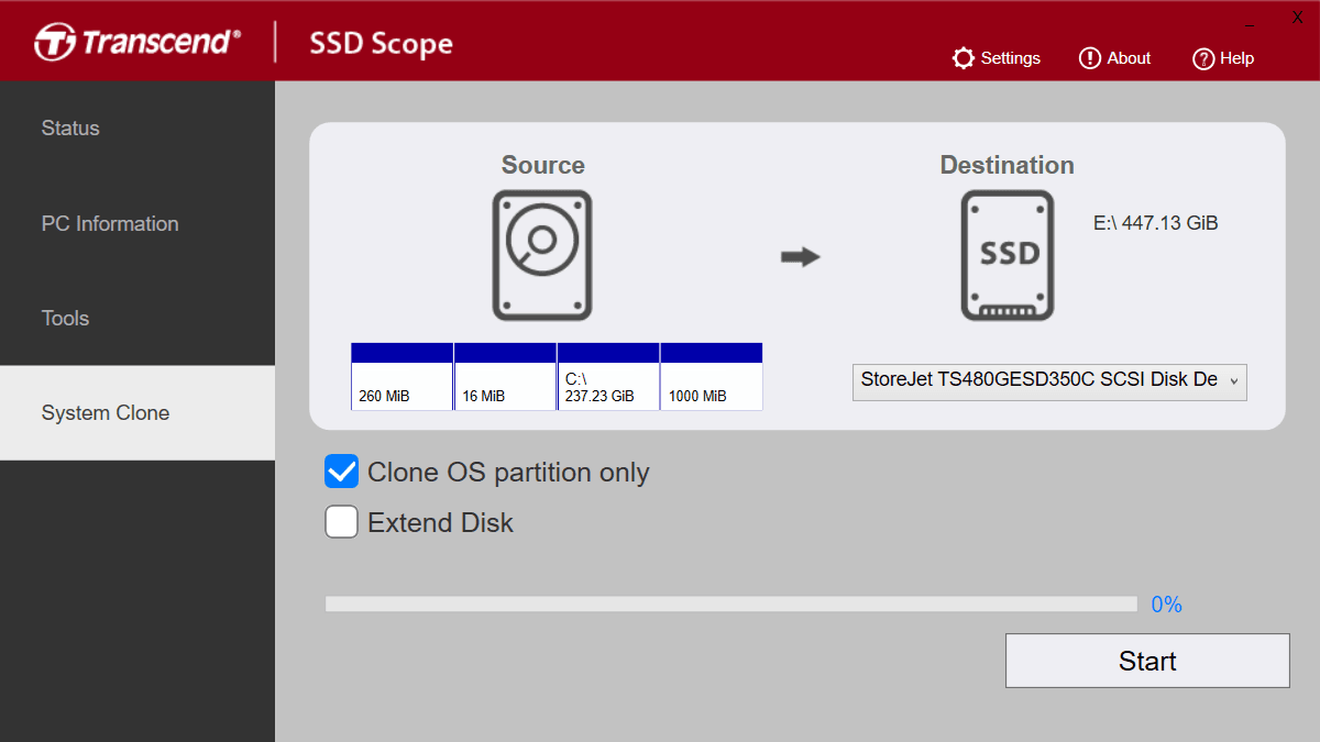 Like Samsung has its own Samsung Data Migration Software for SSD products, Transcend has its SSD Scope Clone Software as well. User who has purchased a Transcend SSD product will get Transcend SSD Scope which is a data migration tool as well as SSD maintain program.
