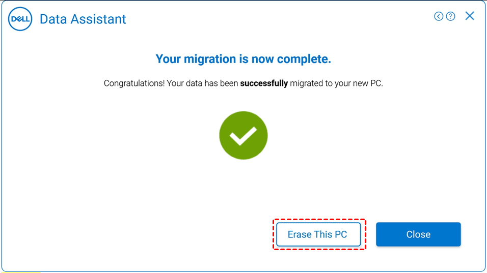 7. Just wait until the Dell Migrate is complete and check the summary of your migration results. If you want to give away your old computer or sell it, click Erase this PC and follow the instructions to complete the rest of steps.