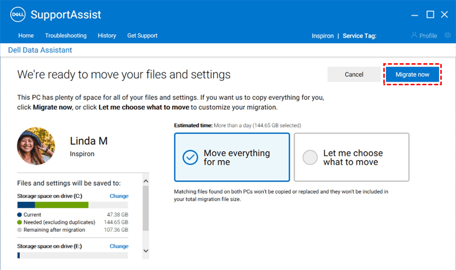 Besides, Dell also provides you with a data transfer tool to transfer files from old laptop to new one, it's called Dell Data Assistant. This is available only for Inspiron, Inspiron G Series, XPS, and Alienware PCs in certain regions. And you need to purchase it before migrating files and settings in your computers and it charges $49. However, you may encounter Dell Migrate not working when you try to use it.