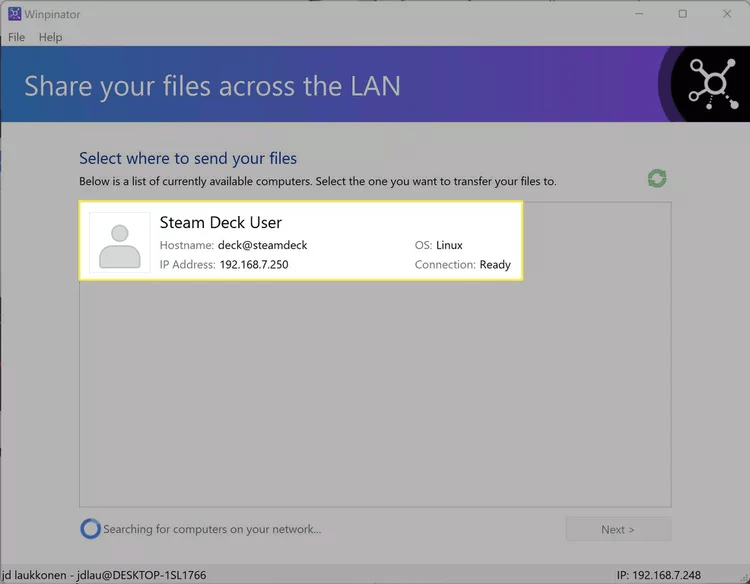 Step 4. On your PC, launch Winpinator and choose your Steam Deck from the available devices.