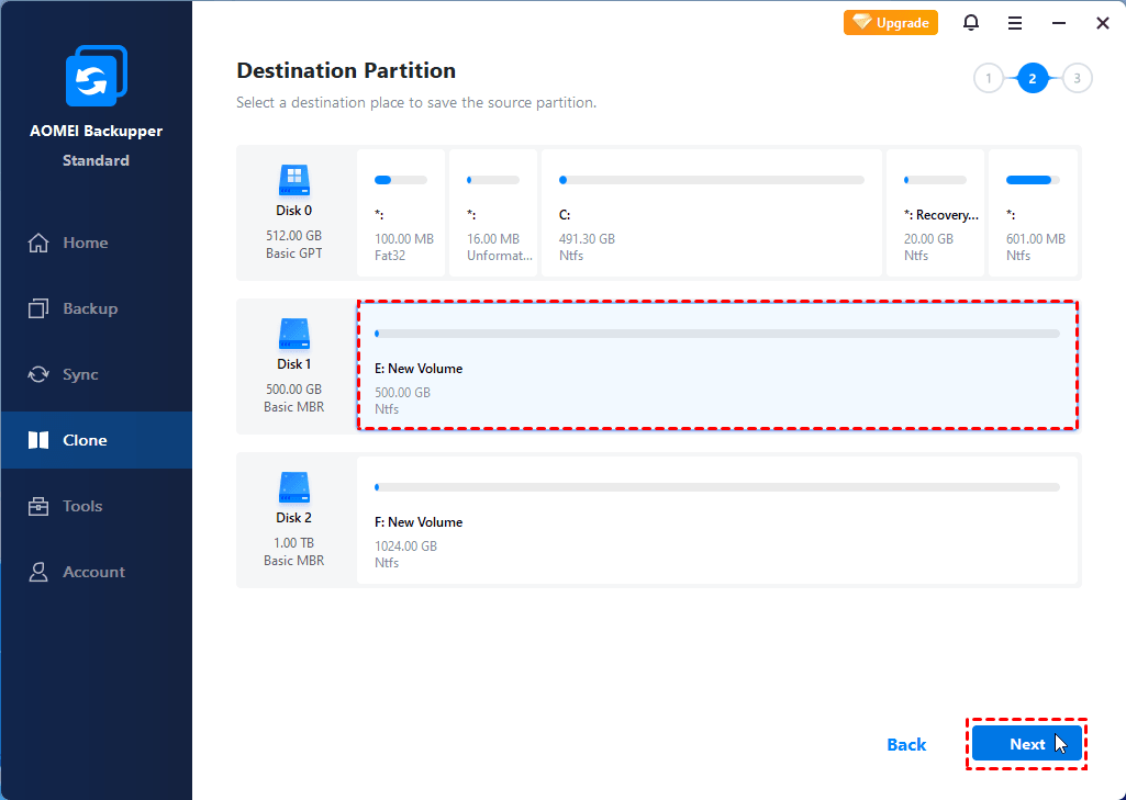 Step 3. Then, select the new hard drive you prepared before as the destination place.