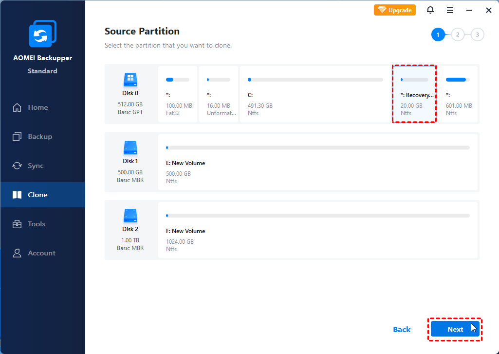 Step 2. Select the recovery partition as the source partition.