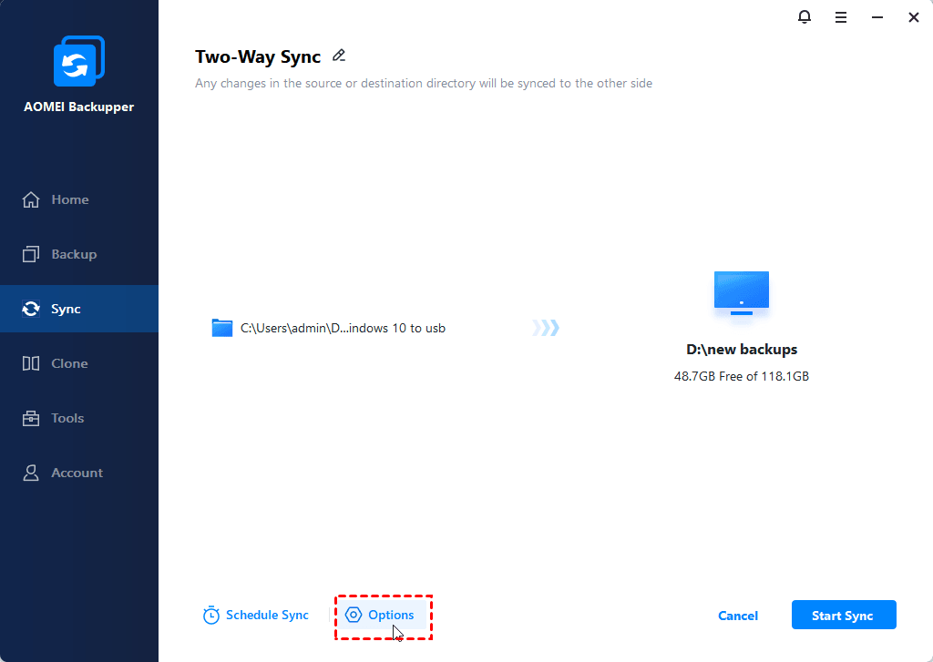 Q: Does AOMEI Backupper support real-time two-way synchronization?