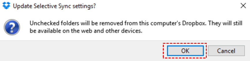 4. Click OK to update Selective Sync settings.