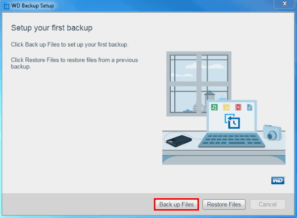 1. Launch WD Backup on your Windows system, and choose either Back up Files or Add Backup Plan.