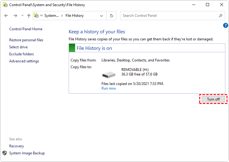 *If there are other problems with your File History, please refer to Windows 10 File History not working.