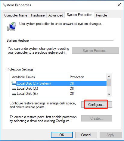 Step 3. Click the drive where your system is stored. Then click Configure.