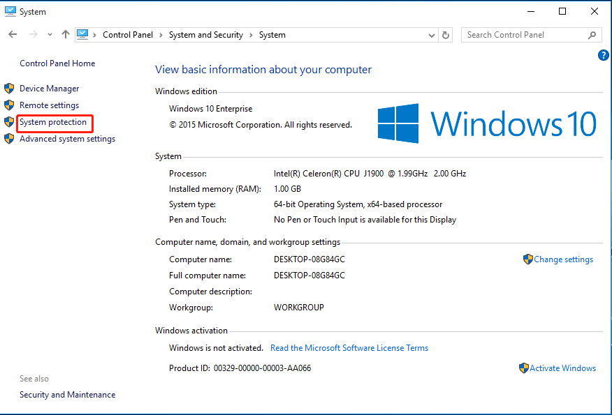 Step 2. Click System protection on the left pane. (Sometimes, it can be located on the right pane, depending on your OS build.)