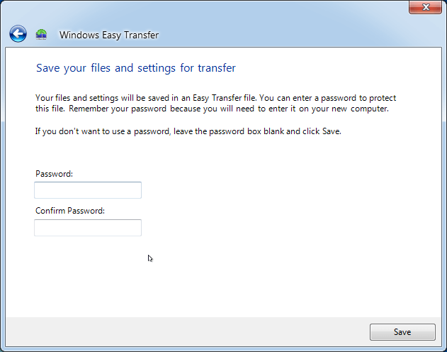 5. Set the password for these data if necessary or leave it blank. And then, hit Save to select an external hard drive to save the file named Windows Easy Transfer - Items from old computers.MIG.