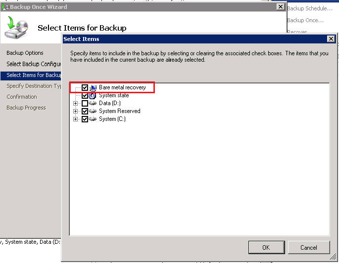 When creating the Windows Server bare metal backup with WSB (Windows Server Backup), you need to select "Full server" in Select Backup Configuration, or select "Customize" -> "Bare metal recovery".