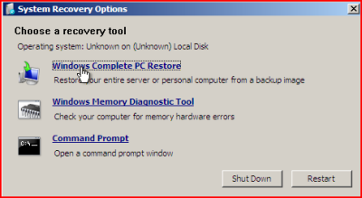 ✬ Note: If the Windows Server bare metal backup is created on 2012 or later version, the recovery tool in the Windows recovery environment will be "System Image Recovery" rather than "Windows Complete PC Restore". Just select it and then choose bare matal backup to be restored.