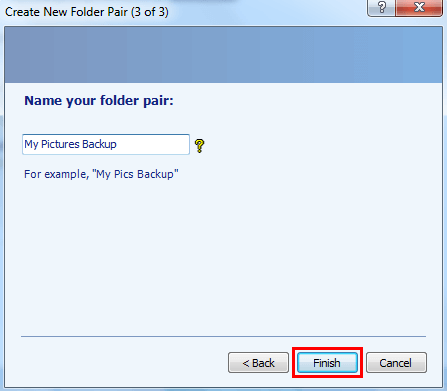 Step 5. Name the folder pair and click Finish. Now the sync job has been successfully created.