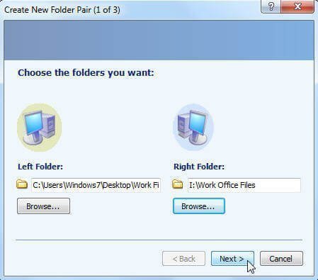 3. Click Browse to select the folder you want to sync from (Left Folder) and to (Right Folder ).