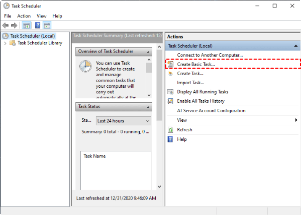 Step 3. Open Task Scheduler by searching it in the Search box. Then, click Create Basic Task at the right side.