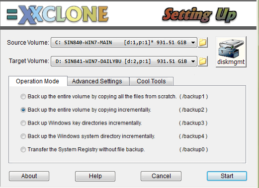 2. Choose an operation mode. You may run Full Volume Backup for the first time and Incremental Volume Backup next time to save your time.
