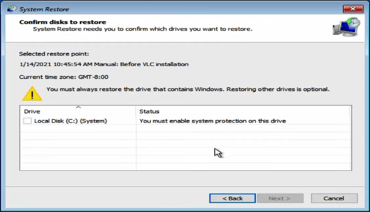 When confronting the error message “You must enable system protection on this drive” in the event of system restore, you can enable system protection using the command line. Likewise, you can turn on system protection from the Control Panel if you are able to enter the Windows environment.