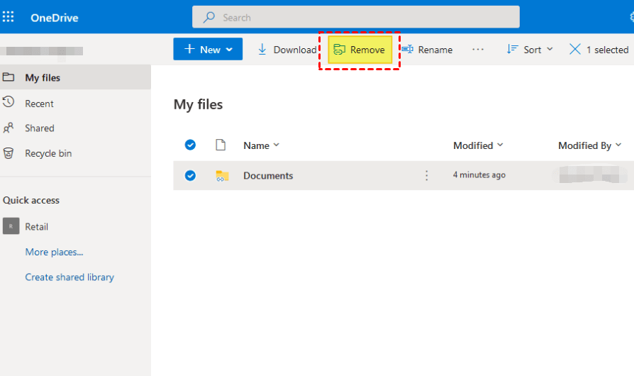 4. Once OneDrive has successfully deleted the shortcut, you can try to resync a folder.